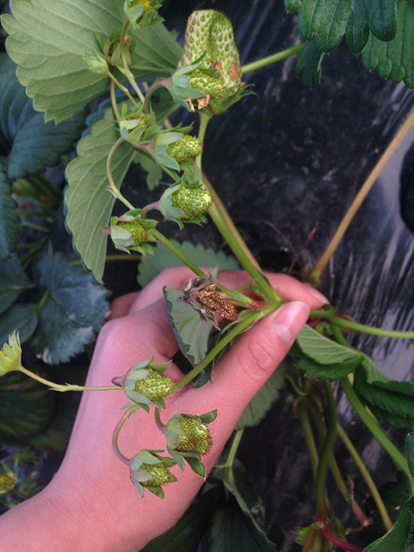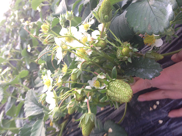 1月25號拍攝,3次用藥后灰霉病控制良好,發(fā)病植株未繼續擴散,草莓正常掛果