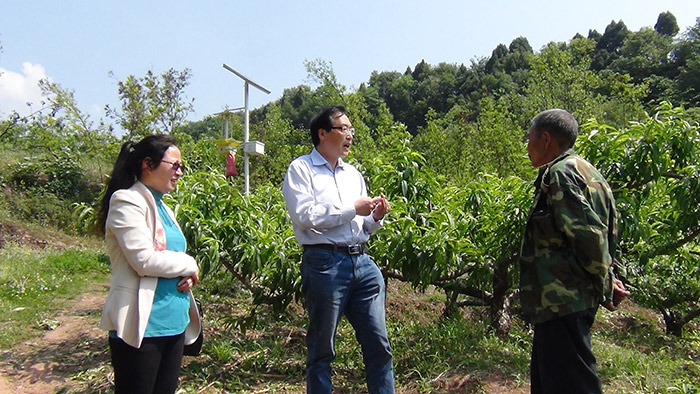 植玉蓉站長(cháng)與黃永博士討論桃縮葉病的發(fā)病規律